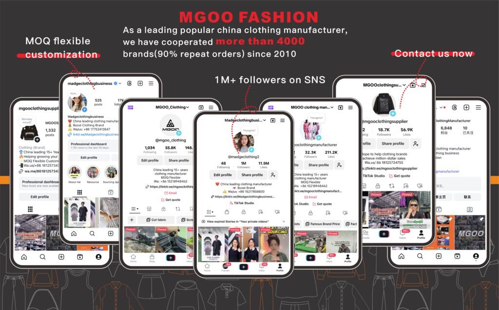 As a custom clothing manufacturer, MGOO’s mission is to help your clothing brand grow by offering one stop services. If you want to start or grow a clothing line, you’ve come to the right place. MGOO makes every process so easy and safe. You can only focus on selling and marketing.